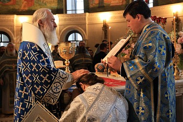 Его Высокопреосвященству сослужили митрополит Симферопольский и Крымский Тихон, наместник Сретенского ставропигиального мужского монастыря игумен Иоанн (Лудищев), братия обители и выпускники Сретенской духовной академии в священном сане.