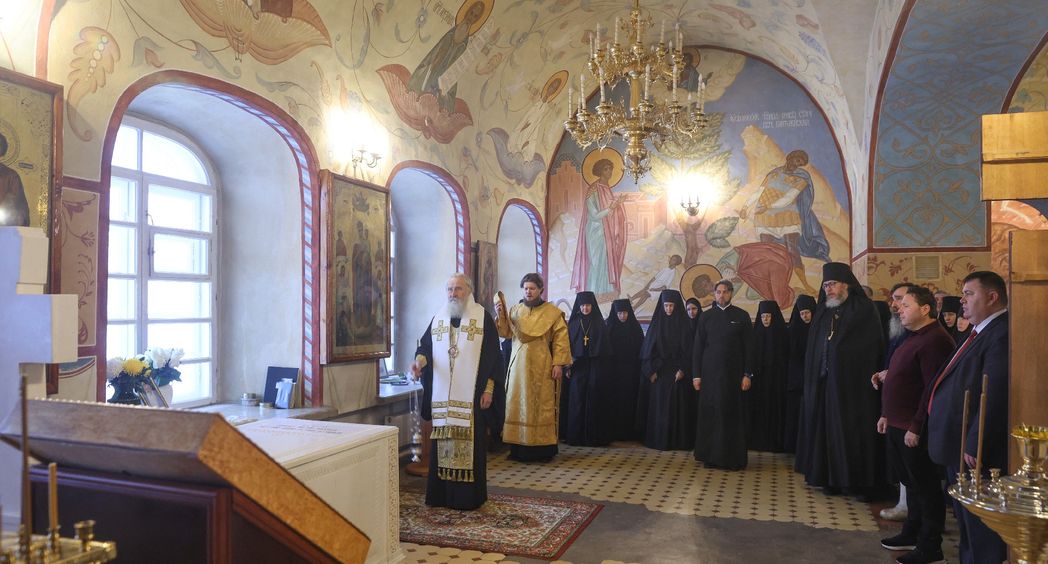 По окончании Божественной литургии была совершена лития по архимандриту Петру (Афанасьеву), духовнику обители, погребенному в правом приделе храма.