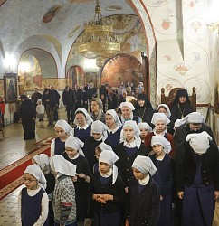 За богослужением с матушкой Антонией и сестрами молились настоятельница Никольского Шостьенского ставропигиального женского монастыря игумения Неонилла (Фролова), воспитанницы и учителя Александровской женской гимназии.