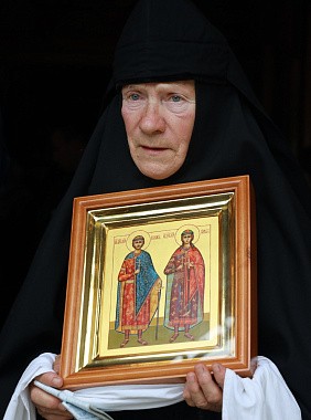 В ответном слове настоятельница обители игумения Мария поблагодарила Святейшего Патриарха Кирилла за поздравление и сугубое благословение, поблагодарила владыку Феогноста за совершенную праздничную Литургию, молитвы и назидательное доброе слово и преподнесла в память о праздничном событии икону святых благоверных князей и страстотерпцев Бориса и Глеба.