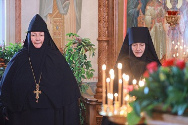 Накануне вечером собором монастырского духовенства в пределе святых благоверных князей и страстотерпцев Бориса и Глеба в обители было отслужено торжественное всенощное бдение с литией и пением акафиста.