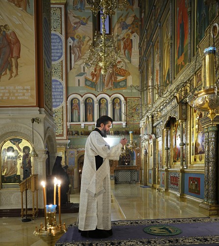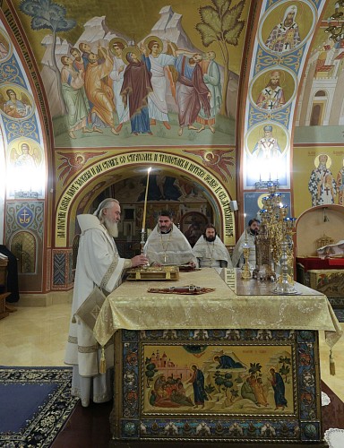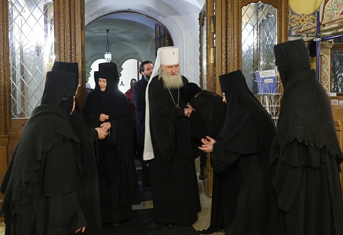 Высокопреосвященному владыке сослужили монастырские клирики. Богослужебные песнопения исполнил хор Зачатьевской обители. По окончании богослужения владыка провел рабочее совещание.