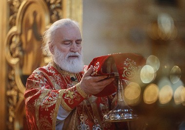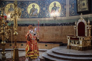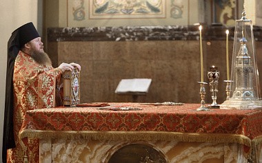 Его Высокопреосвященству сослужили наместник обители архимандрит Варфоломей (Петров) с братией монастыря в священном сане.