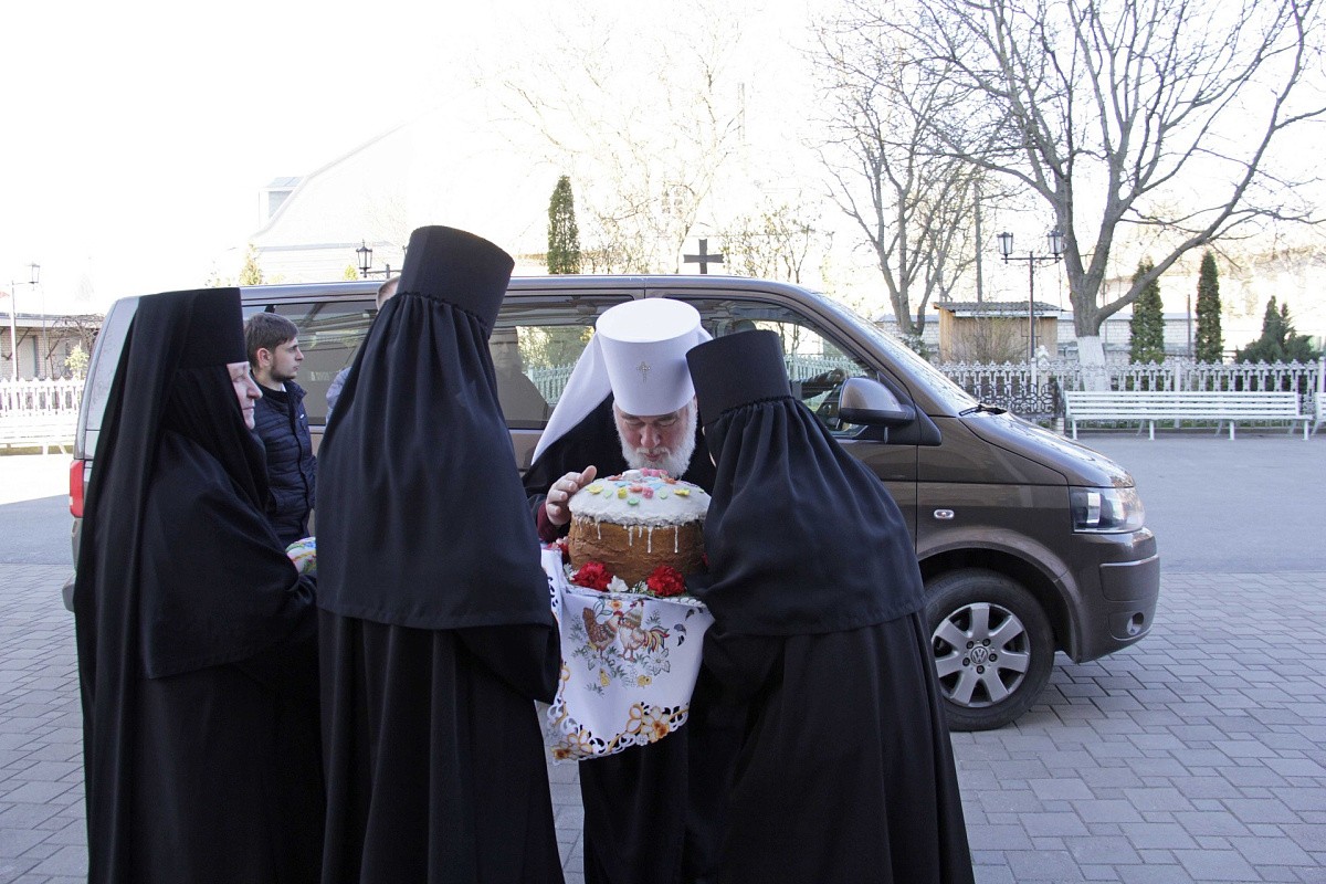 В завершение владыка Варфоломей произнес проповедь и поздравил настоятельницу с сестрами и всех присутствующих с праздником Светлой Пасхи.
