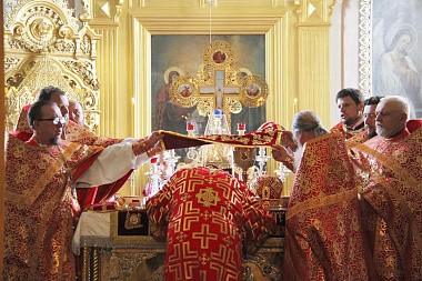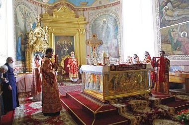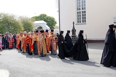 Его Высокопреосвященству сослужило монастырское и местное духовенство.