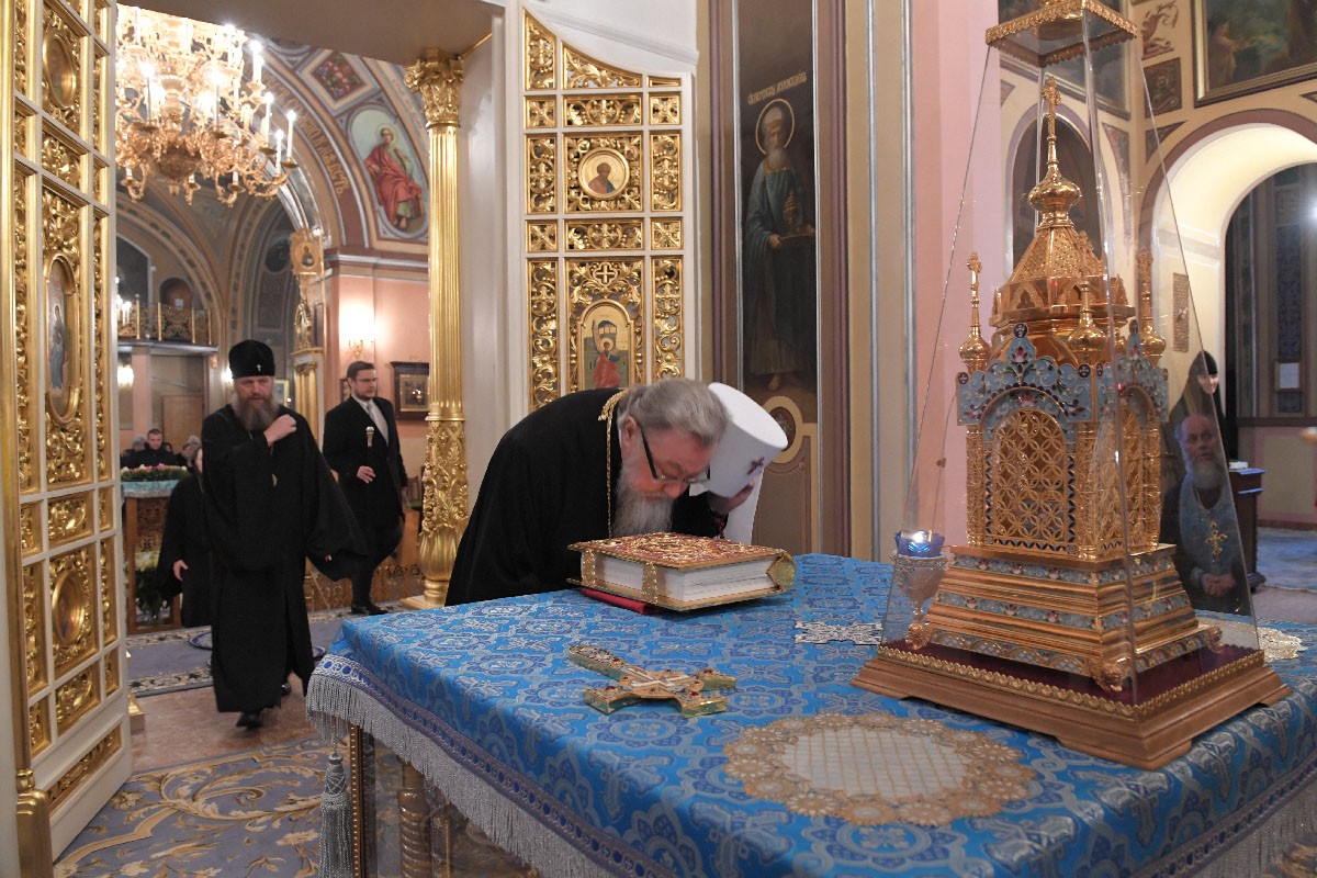 Мы сердечно благодарим Его Святейшество Святейшего Патриарха Московского и всея Руси Кирилла за то, что по его Первосвятительскому благословению сегодня Вы, Ваше Блаженство, посетили Покровский женский монастырь и поклонились святым мощам блаженной старицы Матроны Московской, нашей заступницы и покровительницы.