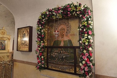 В дар игумении Феофании Его Блаженство преподнес икону Божией матери Ченстоховской и книгу, посвященную 10-летию возрождения Марфо-Мариинской обители милосердия.