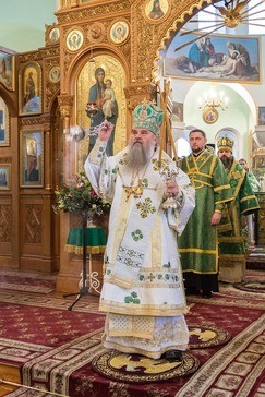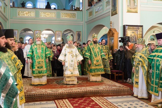 По окончании богослужения владыка Варсонофий передал клирикам, настоятельнице, сестрам и прихожанам обители поздравление от Святейшего Патриарха Московского и всея Руси Кирилла с днем памяти святого праведного Иоанна Кронштадтского, с наступившим новолетием и грядущим праздником Рождества Христова, а затем обратился к молящимся с архипастырским словом: