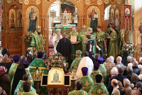 В ответном слове игумения Людмила поблагодарила митрополита Варсонофия за молитвы, пожелала Его Высокопреосвященству помощи Божией и преподнесла в дар икону святого Иоанна Кронштадтского.