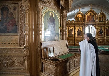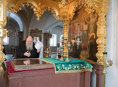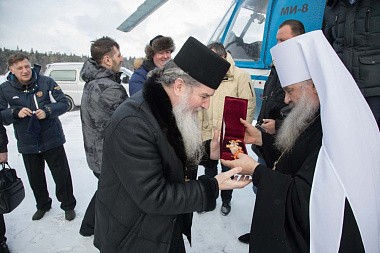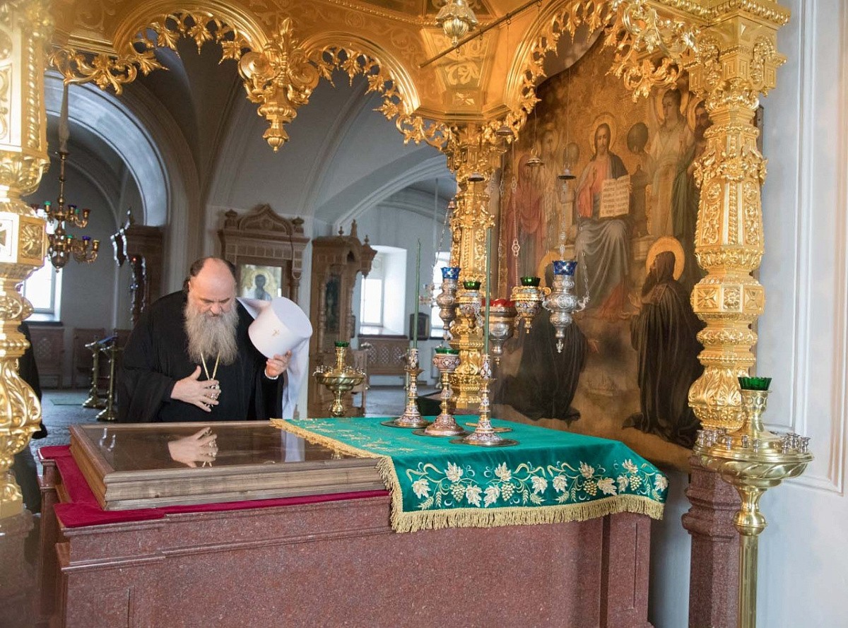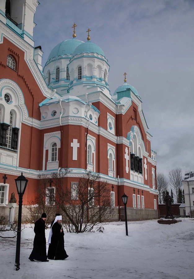 В тот же день Владыка и сопровождавшие его лица побывали в Спасо-Преображенском Валаамском ставропигиальном мужском монастыре. В сопровождении игумена обители епископа Троицкого Панкратия гости посетили храм Воскресения Христова, где приложились к святым мощам преподобных Сергия и Германа, Валаамских чудотворцев.