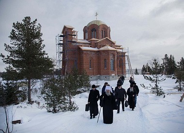 Гости ознакомились с ходом строительных работ, которые ведут благотворители при координации Санкт-Петербургской епархии. Владыка выразил благодарность строителям, дав рекомендации по внутреннему убранству скитского храма.