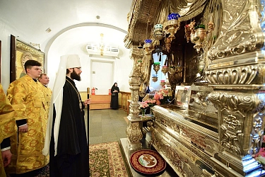 Его Высокопреосвященству сослужили духовенство г. Москвы и Покровской обители.