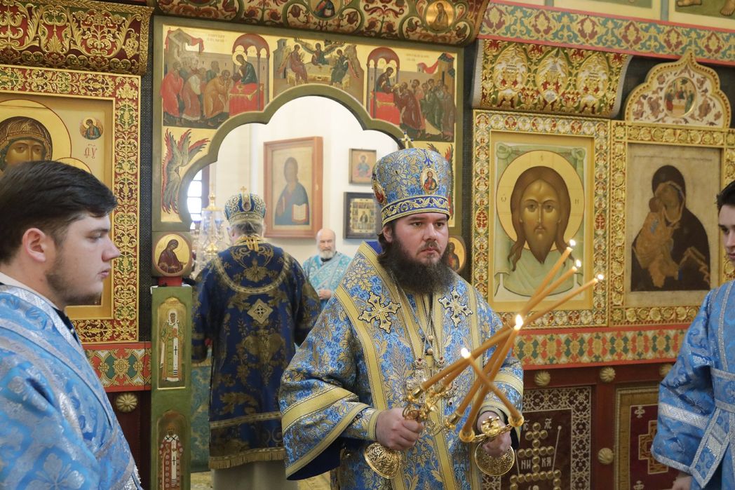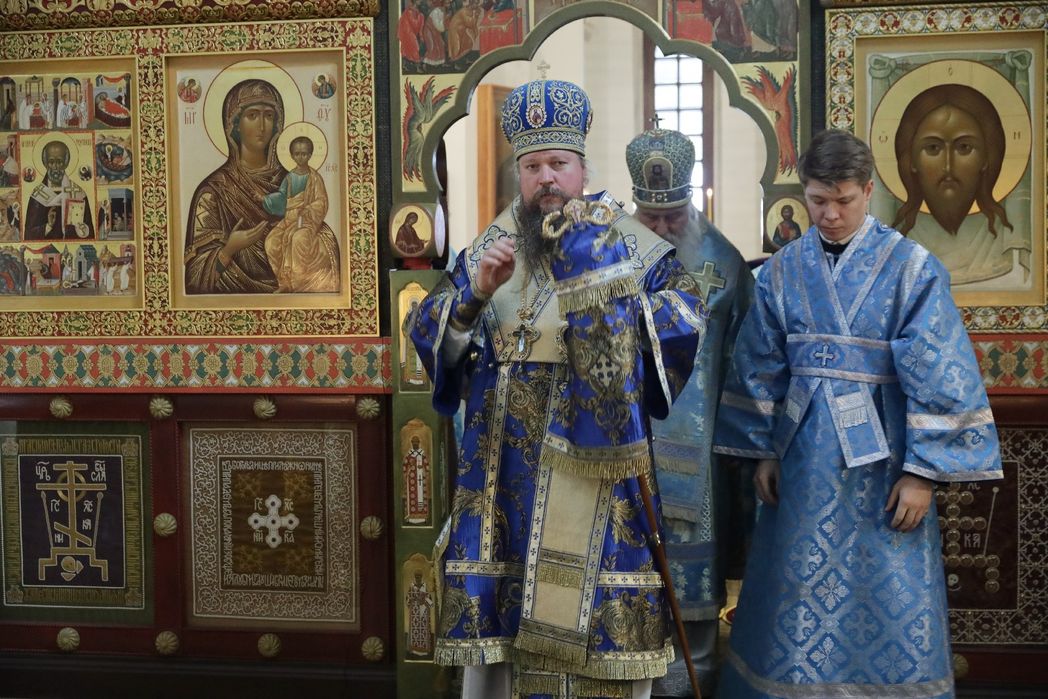 Его Высокопреосвященству сослужили: митрополит Каширский Феогност, председатель Синодального отдела по монастырям и монашеству, наместник Донского ставропигиального монастыря; епископ Сергиево-Посадский и Дмитровский Фома, наместник Свято-Троицкой Сергиевой лавры; протопресвитер Владимир Диваков, секретарь Патриарха Московского и всея Руси по г. Москве; архимандрит Павел (Кривоногов), наместник Саввино-Сторожевского ставропигиального монастыря.