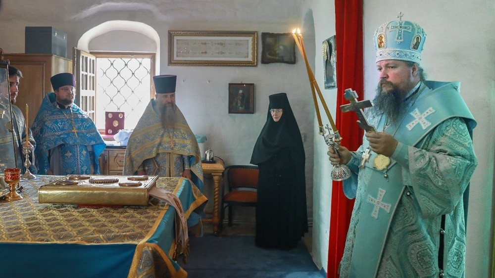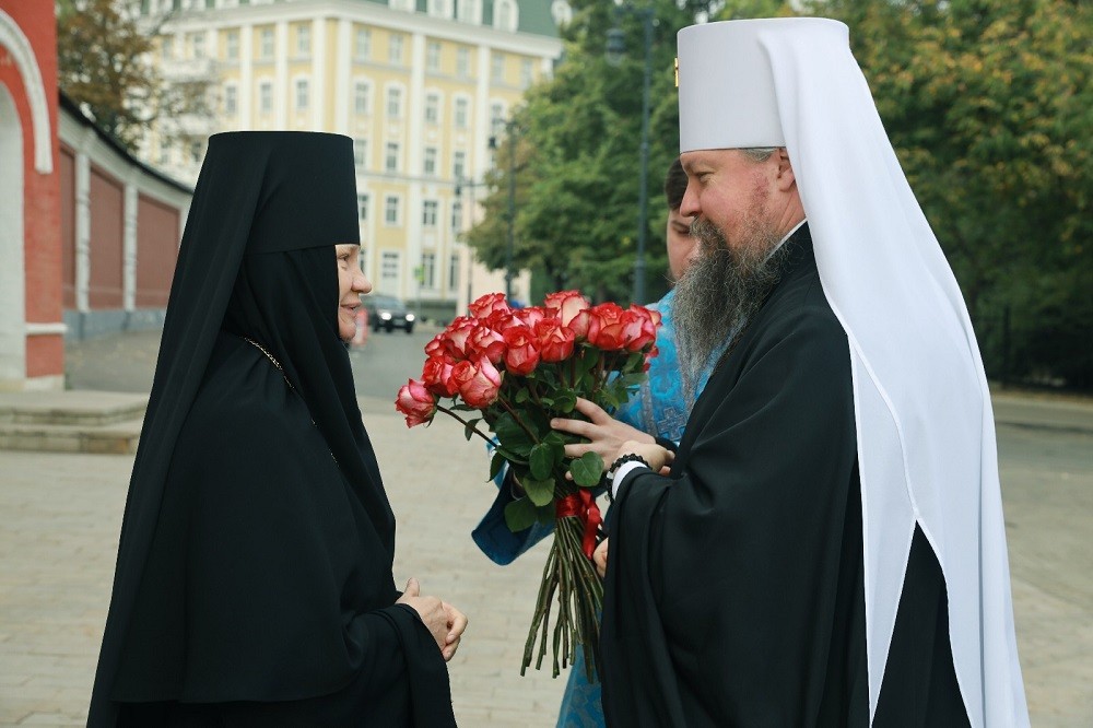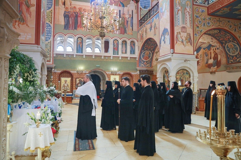 Его Высокопреосвященству сослужили клирики монастыря. За Литургией молились настоятельница обители игумения Иулиания (Каледа) с сестрами и игумения Елисавета (Позднякова), настоятельница ставропигиального женского монастыря Марфо-Мариинская обитель милосердия.