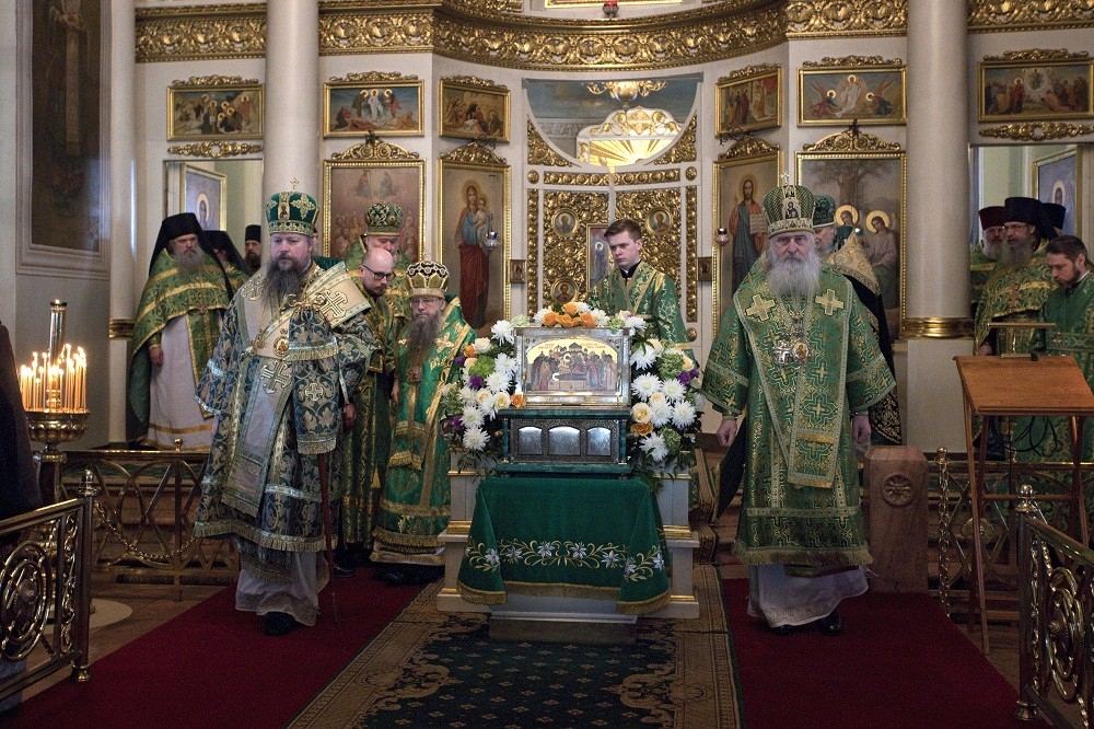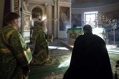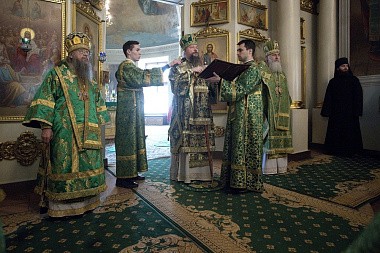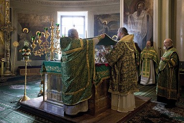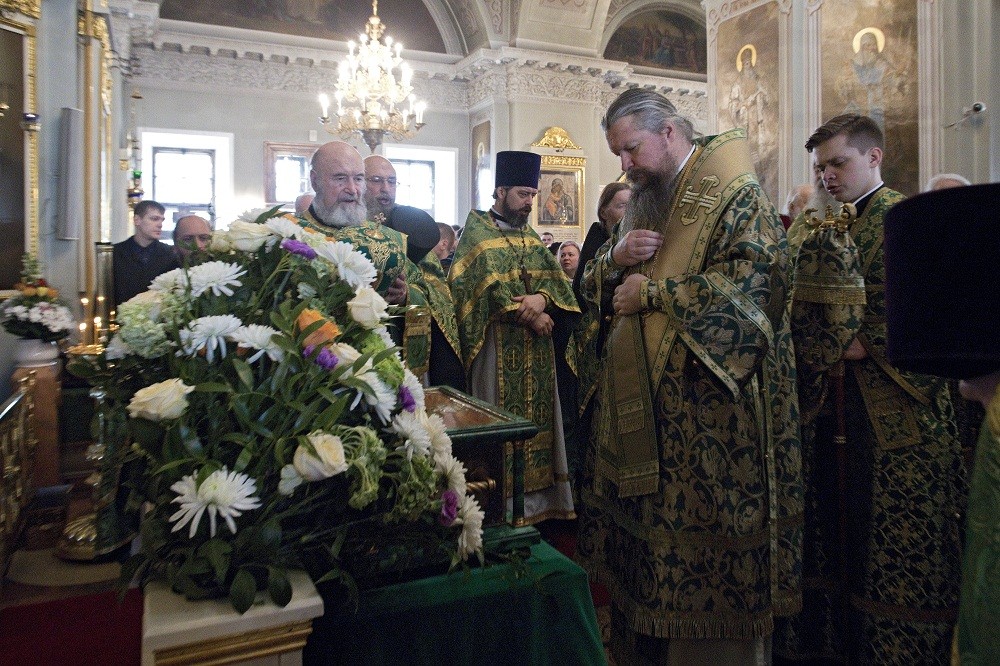 Его Высокопреосвященству сослужили:председатель Синодального отдела по монастырям и монашеству, наместник Донского ставропигиального монастыря митрополит Каширский Феогност; наместник Данилова ставропигиального монастыря епископ Солнечногорский Алексий; секретарь Патриарха Московского и всея Руси по г. Москве протопресвитер Владимир Диваков; пресс-секретарь Синодального отдела по монастырям и монашеству, настоятель московского подворья Введенского ставропигиального монастыря Оптина пустынь архимандрит Мелхиседек (Артюхин); братия обители в священном сане.