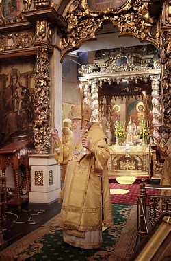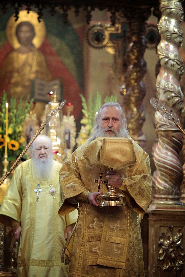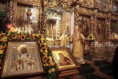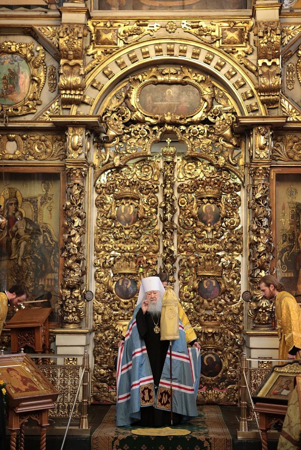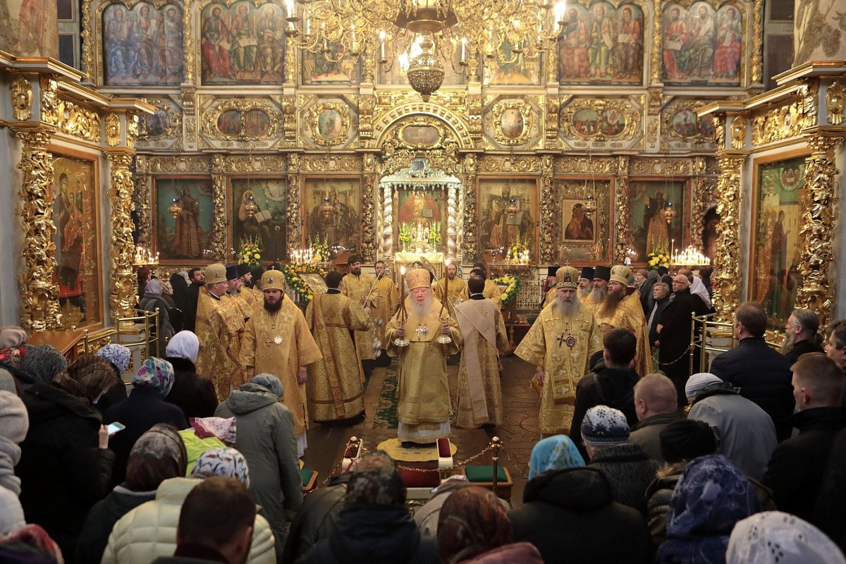 Мы имели сегодня радость по благословению Святейшего Патриарха Кирилла соборно совершить Божественную литургию в этом историческом соборе у мощей святителя Тихона, Патриарха Всероссийского. Сегодня исполнилось ровно тридцать лет с того события, когда в нашей Церкви отмечалось 400-летие восстановления автокефалии. На Архиерейском Соборе 1989 года было принято решение о причислении Предстоятеля нашей Церкви Святейшего Патриарха Тихона к лику святых. Много милости Божией мы получаем через его молитвенное предстательство!
