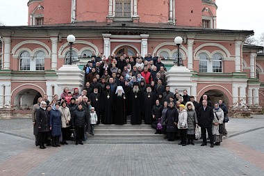Я поздравляю вас с праздником, причастников и причастниц – с принятием Святых Христовых Тайн! На всех вас призываю Божие благословение и молитвенное предстательство святителя Тихона, Патриарха Всероссийского».