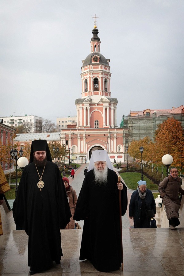 Его Высокопреосвященству сослужили: председатель Синодального отдела по монастырям и монашеству архиепископ Каширский Феогност; наместник Донского монастыря епископ Бронницкий Фома; заместитель председателя Синодального отдела по монастырям и монашеству, наместник Московского подворья Троице-Сергиевой лавры архимандрит Стефан (Тараканов); духовенство Московской городской епархии.