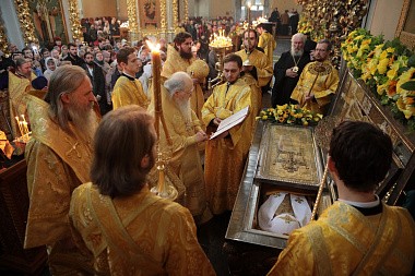 По окончании Божественной литургии было совершено славление у мощей святителя Тихона.