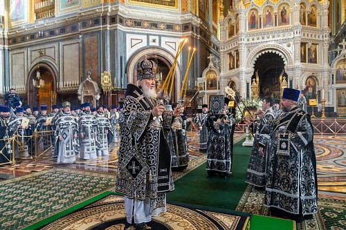На сугубой ектении были вознесены особые прошения, Предстоятель Русской Православной Церкви прочитал молитву о Святой Руси.