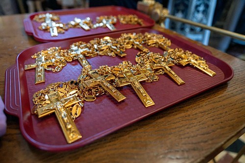 На малом входе указом Святейшего Патриарха Кирилла за усердное служение Святой Церкви ряд клириков Патриарших подворий, ставропигиальных приходов и монастырей к празднику Святой Пасхи удостоены следующих богослужебно-иерархических наград: