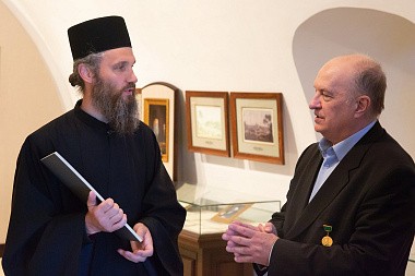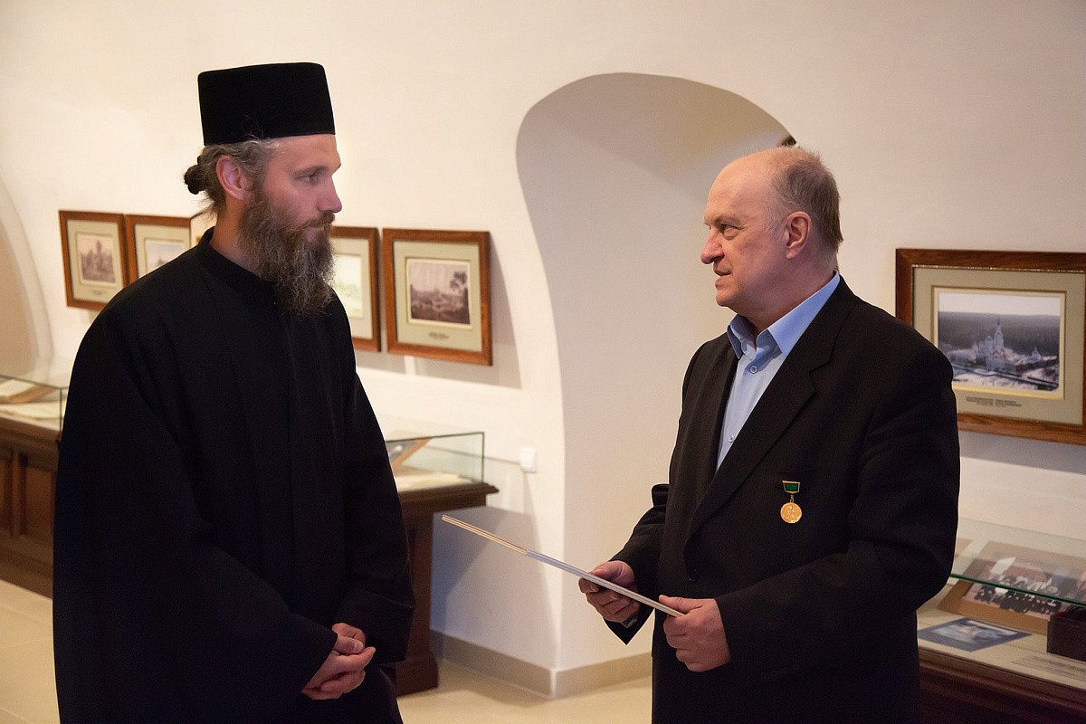 «Мы благодарим вас за щедрость души. Это такое сокровище. Оно попало по адресу – здесь оно будет доступно многим людям. Здесь вся история Валаама, которая, собственно, охватывает историю Руси и вообще нашей русской земли. Этот гимн очень простой по слогу. Валаамский монастырь назывался "мужицкая обитель", потому что приходили крестьяне с благородной доброй душой, труженики и молитвенники. И Петр (Михайлов) написал тогда этот гимн, отразив в нем всю ту любовь и к Валааму, и русской земле, и Богу, объединив те чувства и то множество людей, которые сюда приезжали.