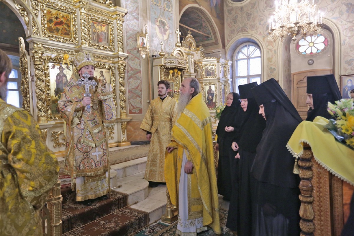 По окончании Литургии епископ Серафим передал благословение и поздравления Святейшего Патриарха Московского и всея Руси Кирилла духовенству, насельницам, прихожанам и гостям обители.