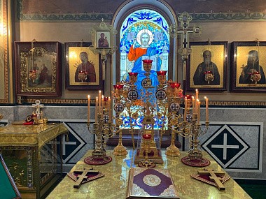 После молебна начальник подворья игумен Иосиф (Крюков) произнес проповедь для присутствовавших за богослужением и поблагодарил прихожан за внесенную лепту в благоукрашение храма.