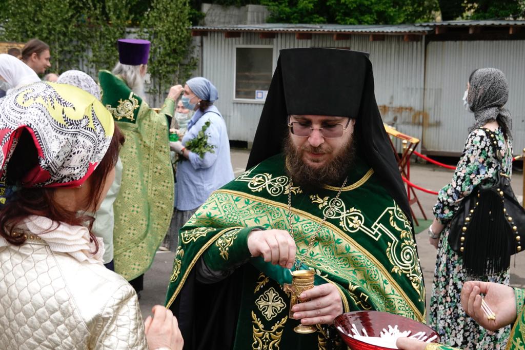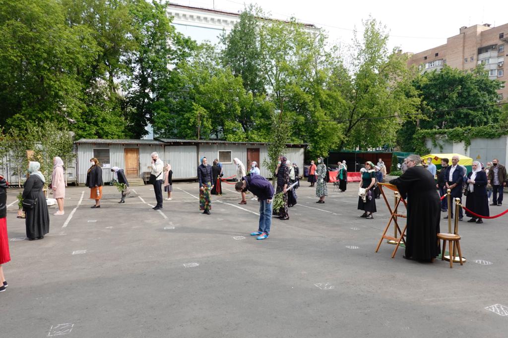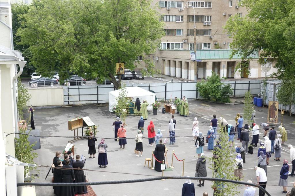 6–7 июня 2020 года, в Троицкую родительскую субботу и праздник Пятидесятницы, на Московском подворье Спасо-Преображенского Валаамского ставропигиального мужского монастыря состоялись праздничные богослужения. Чтобы все желающие после долгого перерыва смогли принять участие в соборной молитве, исповедаться и причаститься Святых Христовых Таин, службы было решено проводить во внутреннем дворе храма, где была устроен временный алтарь, размещены уличные подсвечники, на специально сооруженных аналоях установлены ростовые иконы. На подставках по всей территории по традиции были установлены березки, еще больше передававшие праздничное настроение. Всё это позволило в краткие сроки превратить прилегающую к подворью площадку в полноценный храм, по периметру которого были установлены громкоговорители, позволявшие всем присутствовавшим хорошо слышать и молитвословия духовенства, и песнопения хора, и проповедь.