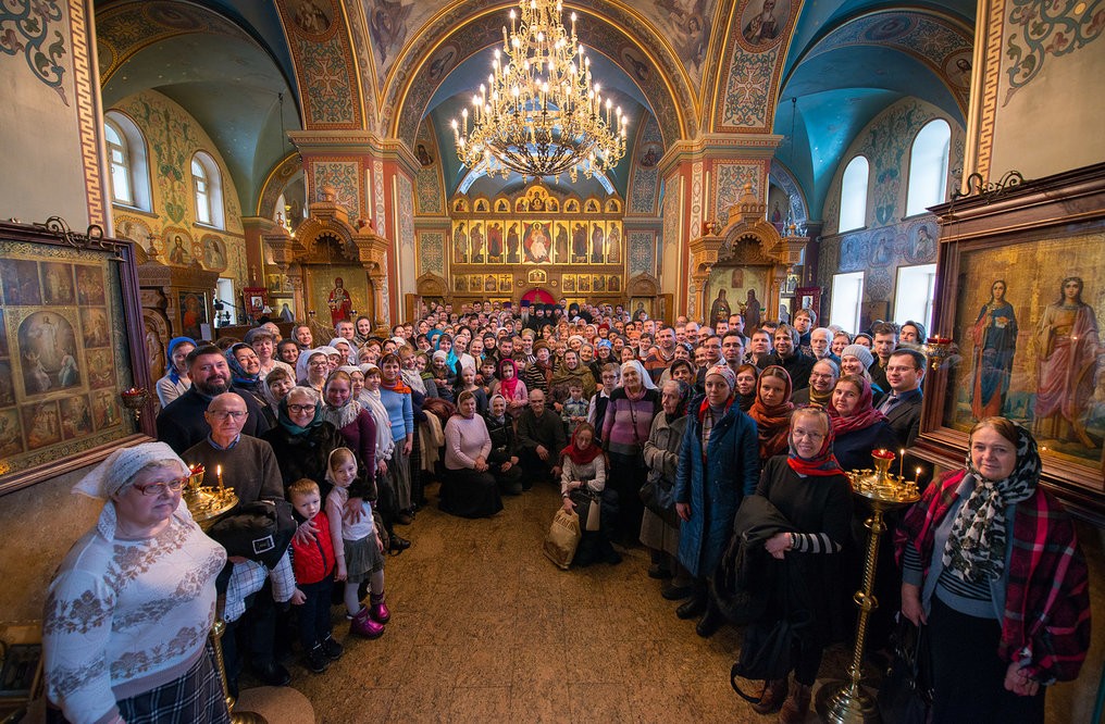 Дружный большой приход с трудом уместился на фотографии. В съемке приняли участие и приходские организации подворья: Миссионерское братство во имя преподобного Германа Аляскинского, Православный английский дискуссионный клуб, Иконописная и Воскресная школы, хоровой кружок и сотрудники храма.