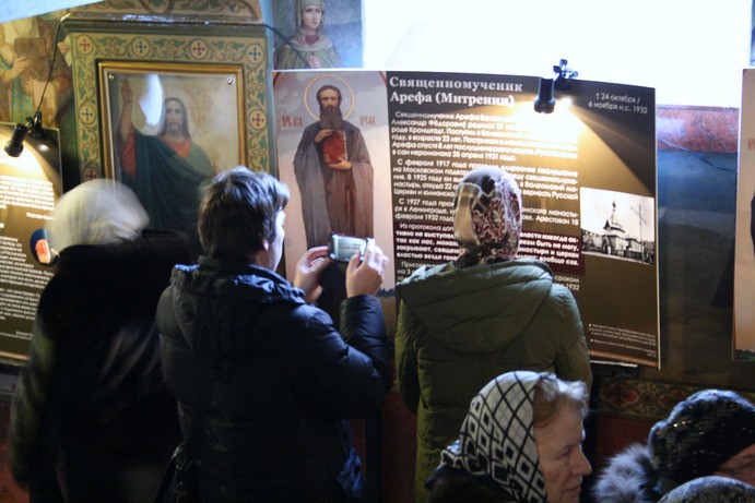 Кроме того, на стендах представлены выдержки из выступлений Святейшего Патриарха Московского и всея Руси Кирилла, игумена Спасо-Преображенского Валаамского монастыря, епископа Троицкого Панкратия, посвященные теме почитания новомучеников.