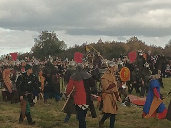Кульминацией исторического праздника на Красном холме стала реконструкция эпизода средневекового сражения.