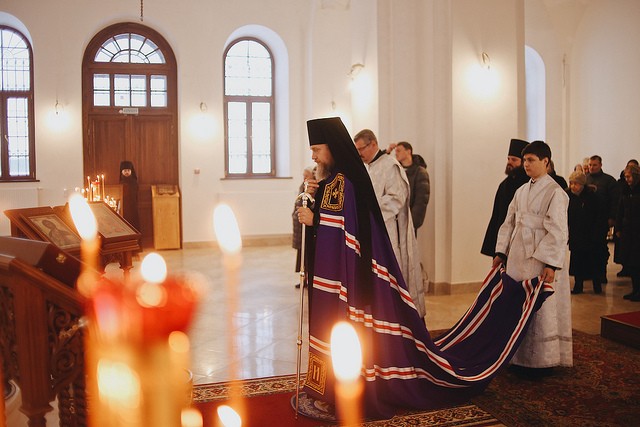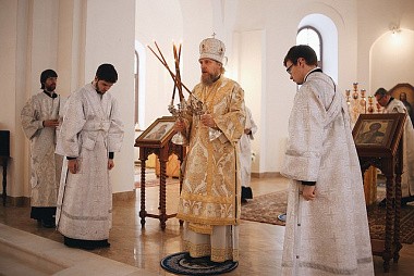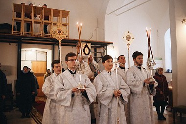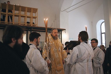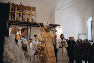 За Божественной литургией Его Преосвященству сослужили насельники Новоспасского монастыря и подворья обители в с. Сумарокове: иеромонахи настоятель подворья Сергий (Филиппов) и Амвросий (Рыженков), иеродиаконы Арсений (Гуляев) и Прокопий (Жамков).