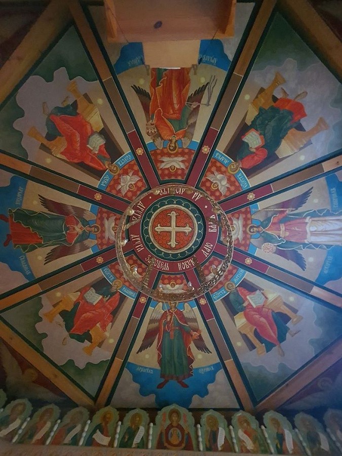 Деревянный храм на подворье возведен по старинным технологиям тоже относящимся к ХVII столетию, для его возведения были изготовлены инструменты подобные тем, что использовались в XVII веке. Храм получился очень красивым. Его благоукрашение продолжалось на протяжении всех лет существования. Оно полностью еще не закончено. В настоящее время на подворье ведутся работы по устройству иконостаса в каменном храме, также создан проект реконструкции колокольни.