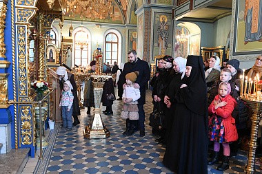 За богослужением молились: настоятельница Покровского ставропигиального женского монастыря игумения Феофания (Мискина), насельницы подворья, воспитанницы детского приюта обители, ученики и учителя НОЧУ «Православная гимназия в Троице-Лыкове г. Москвы» и прихожане.