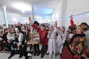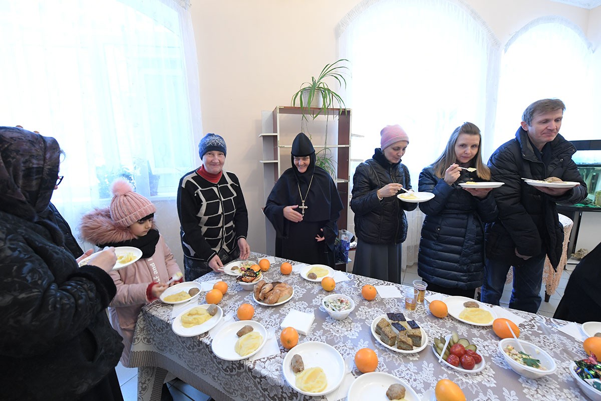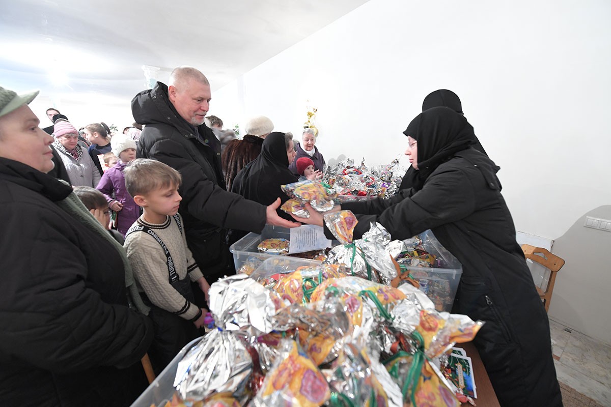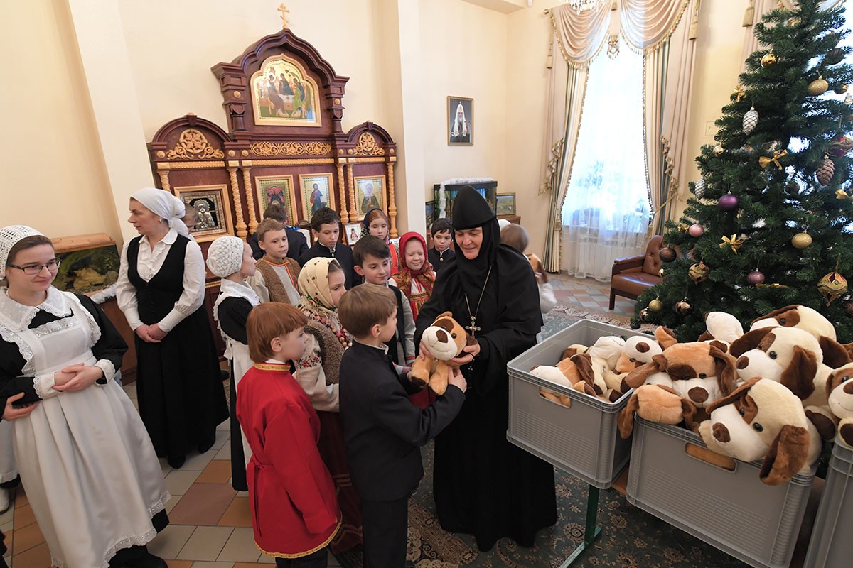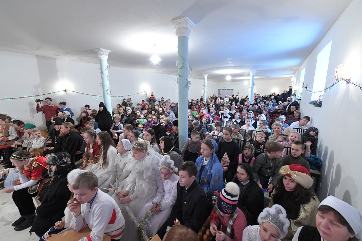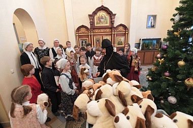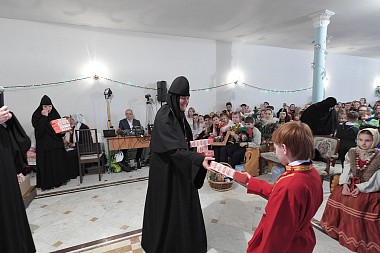 По окончании богослужения настоятельница монастыря игумения Феофания (Мискина) поздравила всех детей и гостей с праздником Рождества Христова и новолетием.