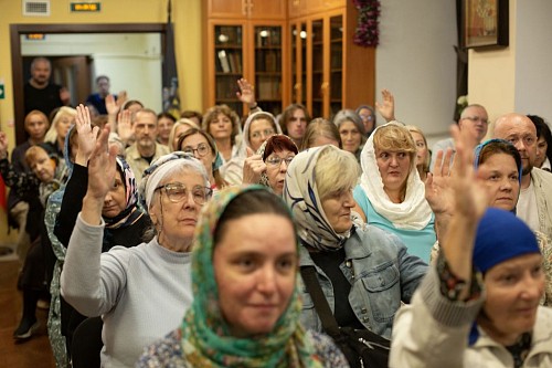 Встреча с Давидом Георгобиани была организована в рамках действующего на подворье кинолектория, в котором прихожане вместе с отцом Александром регулярно смотрят и обсуждают лучшие образцы отечественного и зарубежного кинематографа. Узнать расписание будущих просмотров, а также других духовно-просветительских занятий и лекций можно на официальном сайте и в соцсетях Санкт-Петербургского Валаамского подворья.