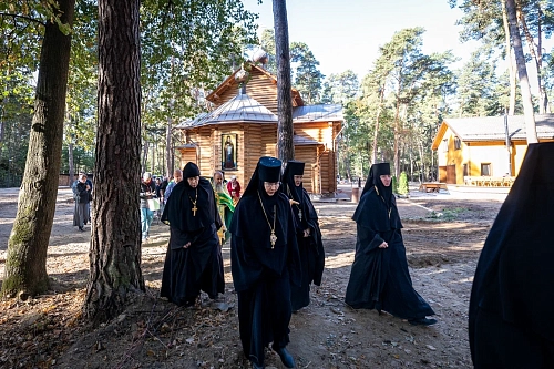По окончании Литургии был совершен крестный ход к месту расположения землянки, где укрывались в 30-е годы XX века насельницы монастыря, и совершена заупокойная лития.