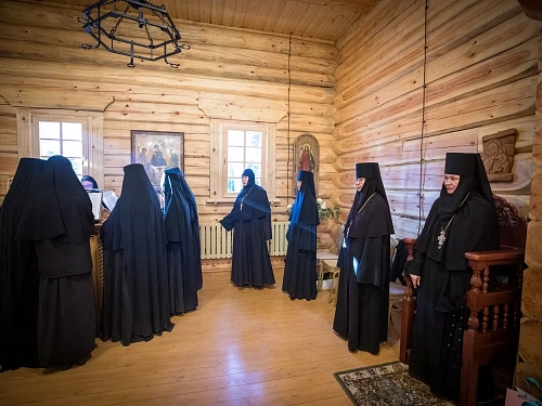 За богослужением молились заместитель председателя Синодального отдела по монастырям и монашеству, настоятельница Зачатьевского монастыря игумения Иулиания (Каледа) с сестрами, настоятельница Свято-Николаевского монастыря Донецкой епархии игумения Анна (Морозова), настоятельница Никитского монастыря д. Бывалино Московской области игумения Капитолина (Филиппенко), настоятельница Покровского Александро-Невского монастыря р.п. Колывань Новосибирской области монахиня Мария (Гурвич).