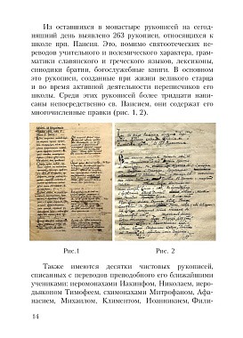 В сборник вошли доклады известного петербургского исследователя рукописного наследия прп. Паисия, автора-составителя книг «Преподобный Паисий Величковский. Житие и избранные творения» (2014), «Каталог славянских рукописей монастыря Нямц» (2017) П.Б. Жгуна; доктора филологических наук, профессора МДА, главного палеографа РГБ (г. Москва) М.С. Крутовой, кандидата филологических наук, главного хранителя ОР БАН (г. Санкт-Петербург) В.Г. Подковыровой.