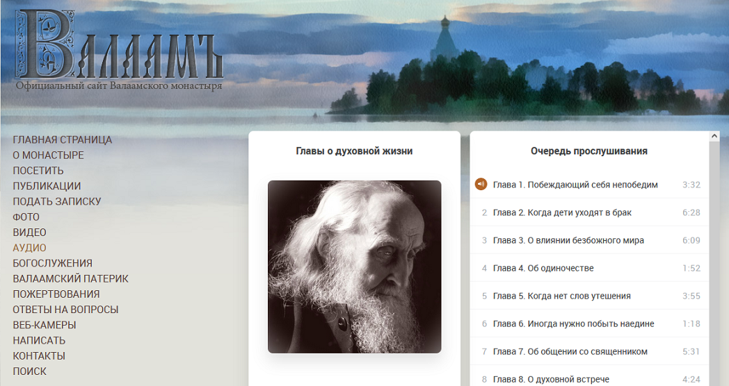 Валаамский Спасо-Преображенский ставропигиальный мужской монастырь подготовил к Рождественскому посту замечательный подарок для читателей своего сайта: аудиокнигу схиархимандрита Софрония (Сахарова) «Главы о духовной жизни», основанную на письмах старца. Специально для Валаамского монастыря ее озвучил народный артист России Валерий Михайлович Ивченко.
