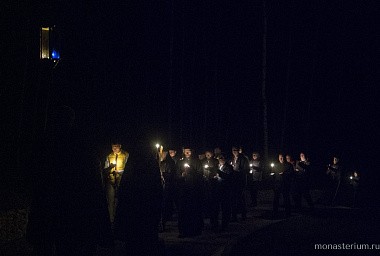 Ровно в полночь состоялся крестный ход с обнесением Святой Плащаницы вокруг храма.