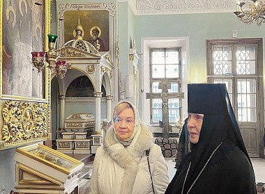 За богослужением молилась настоятельница Богородице-Рождественского ставропигиального женского монастыря игумения Викторина (Перминова).