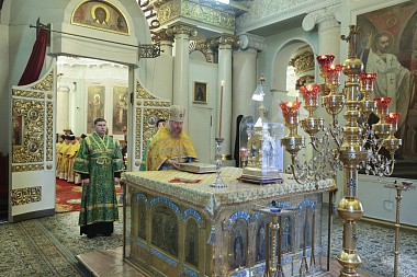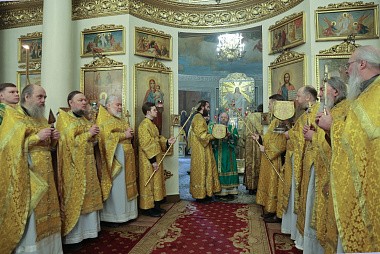 За Литургией Его Преосвященству сослужили епископ Россошанский и Острогожский Дионисий, наместник Саввино-Сторожевского ставропигиального мужского монастыря архимандрит Павел (Кривоногов), братия Даниловой обители в священном сане.