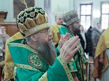 По окончании Божественной литургии архимандрит Павел (Кривоногов) передал епископу Алексию поздравление Святейшего Патриарха Московского и всея Руси Кирилла: