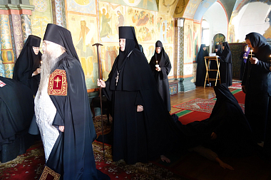 В монастырской жизни самое главное – послушание, а пришли мы в обитель для молитвы. Мы должны об этом помнить, чтобы наш путь был спасительным и чтобы нам не сойти с него. Этот путь крестный, и поэтому нам не всегда будет легко, но именно крестоношением, степенью борьбы со страстями и немощами проверяется правильность нашего пути. Недаром Святая Церковь в эту неделю выносит своим верным чадам Крест, чтобы все мы благодатно укрепились для дальнейшего следования путем Великого поста к Пасхе Христовой.