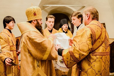 23 декабря 2015 года, в день памяти святителя Иоасафа Белгородского, наместник Донского ставропигиального мужского монастыря Москвы епископ Бронницкий Парамон совершил Божественную литургию в Сретенском храме обители и рукоположил насельника Донского монастыря монаха Тихона (Басова) во иеродиакона.
