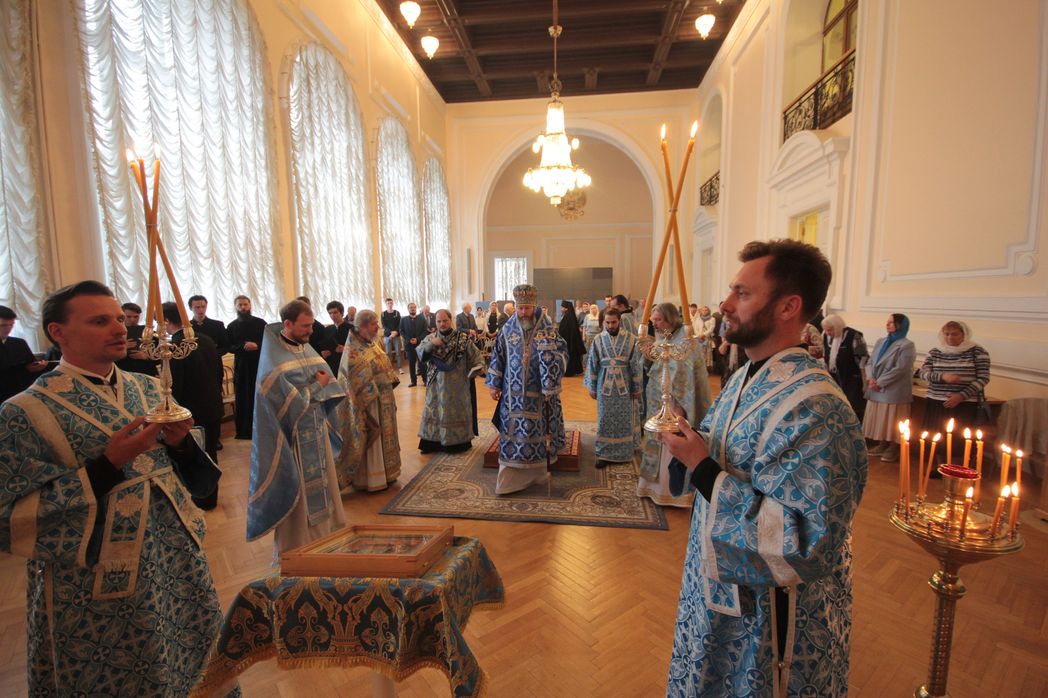 Торжества начались Божественной литургии в домовом храме во имя святителя Николая. Богослужение возглавил епископ Луховицкий Евфимий, викарий Святейшего Патриарха Московского и всея Руси, председатель Синодального миссионерского отдела.