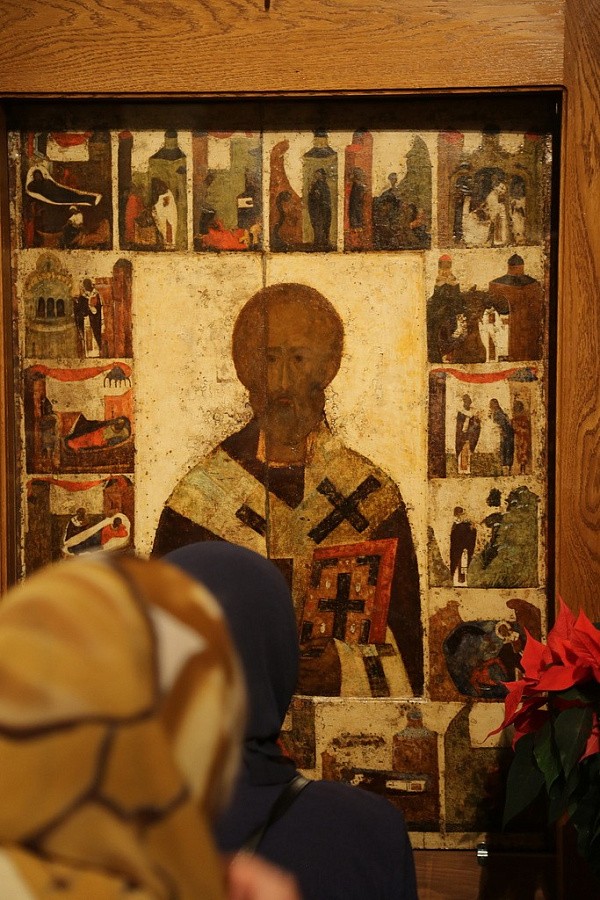 Икона Мирликийского архипастыря, датируемая XIV веком, – видимое свидетельство того, что Господь не оставляет Своей милостью православную Русь. Именно этот образ в 1380 году был явлен московскому князю Димитрию Донскому в поворотный для него и всей русской истории момент. В течение многих столетий икона была главной святыней Николо-Угрешского монастыря и только в 20-е годы прошлого века оказалась в «изгнании», став одним из первых экспонатов созданного тогда музея в селе Коломенском. В 1934 году Угрешский чудотворный образ был передан в Государственную Третьяковскую галерею, где находится и поныне, и всего на несколько дней в году его переносят из музейных запасников в храм Святителя Николая Чудотворца в Толмачах для поклонения.