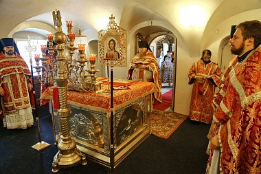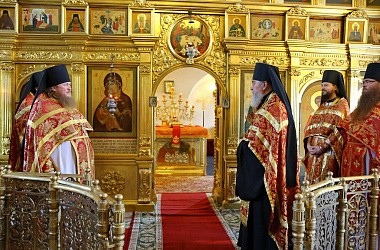 В этот день игумен Варфоломей (Петров) возглавил Божественную литургию в Успенском храме обители.